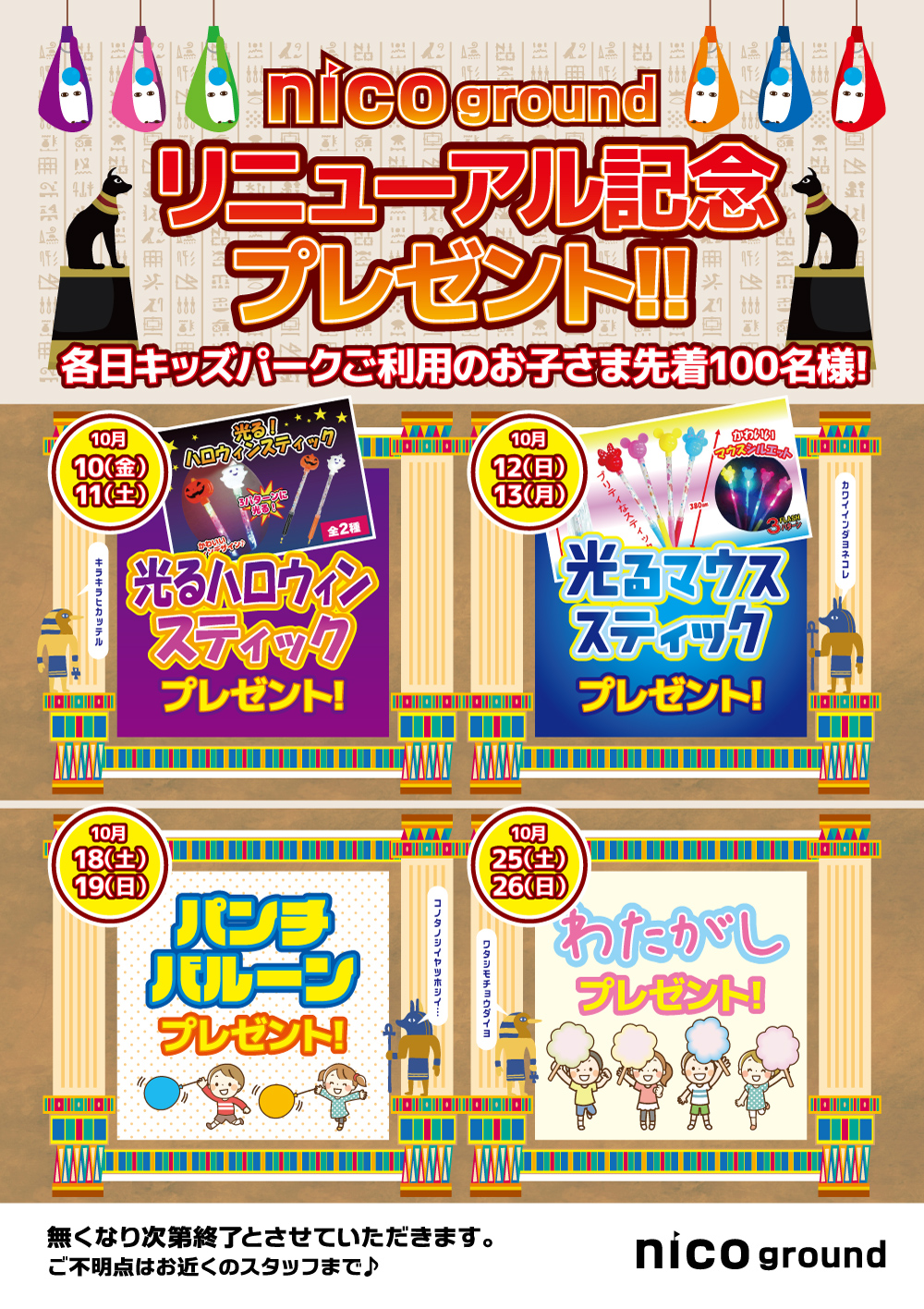 10/10(金)nico ground 千種店のキッズパークが、リニューアルいたします!